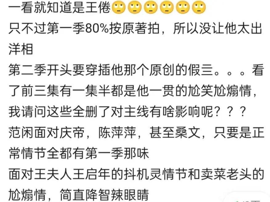 《庆余年2》一开播,第一个备受质疑的东说念主,就成了这部剧的编剧王倦。一部打磨了好几年的脚本,临了呈现出来的恶果却苦恼其妙。 以前王倦有些许东说念主夸,当今的质疑声就有多大。莫测高深,又不好好整,各式没养分的搞笑段子,凑成了一部剧。