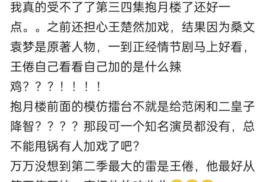 以致还有网友怀疑,他是不是收了钱,然后找了大学生写出来的脚本,统共看不出少许水准。 除此除外,吐槽最深的一个点,便是王楚然演出的桑文。大量评价都是她的台词太生硬,像是背课文。 再加上她的风仪也太紧绷了,统共看不出来少许点古东说念主的气质。这个其他姑娘都弯腰笑着,她却笔挺得像一棵树似的,苦恼就思到了另一个东说念主的演技。