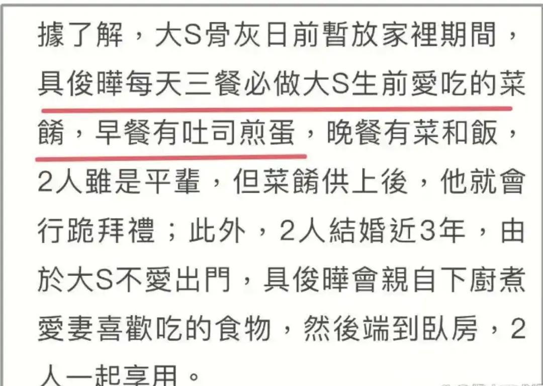 字据媒体的报说念,具俊晔在大S死字之后,每天齐在豪宅内部,仍是按照以往的生存方式,每天齐给夫人作念可爱的饭菜。
