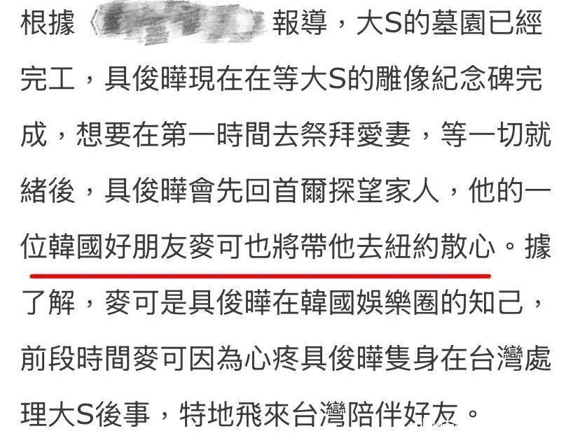 今天传来的音讯,大S的坟场齐建立完成了,传说具俊晔还要请韩国的遐想师给遐想,但今天又说具俊晔要和一又友切身遐想。