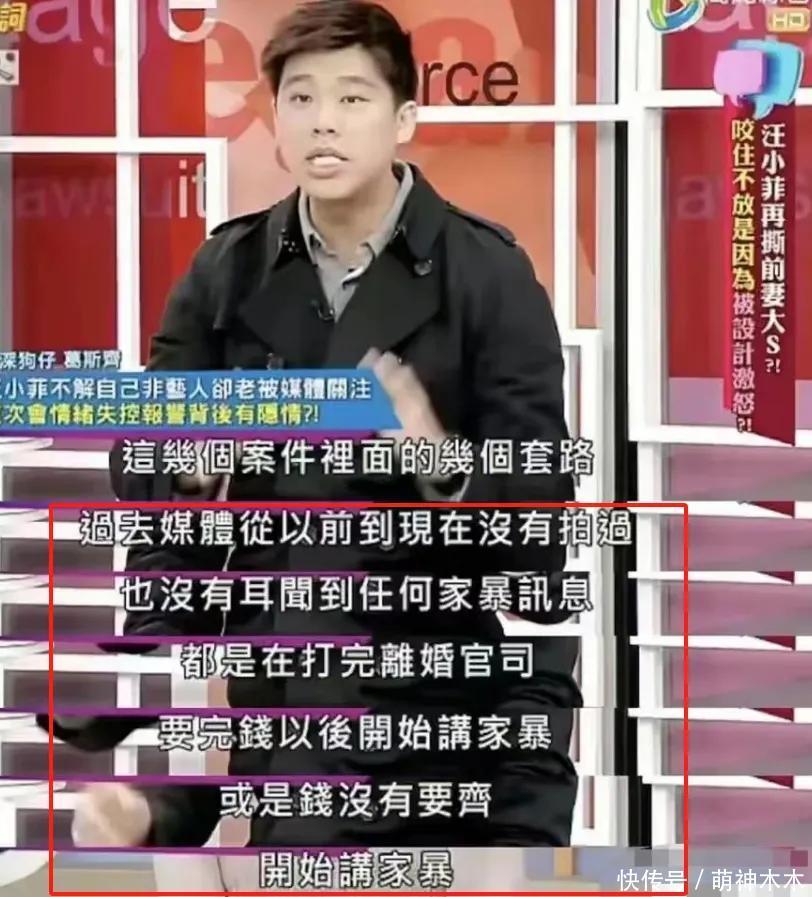 葛斯皆还指出了大S说汪小菲家暴一事,他列出了台湾省有几个比拟知名的明星仳离案例,险些总共的案例当中,男方都会在仳离讼事初始之后倏得被曝光家暴,但在之前从来都莫得风声传出,而这几起案件的讼师刚巧也都是兼并个东说念主,这让网友细念念极恐。